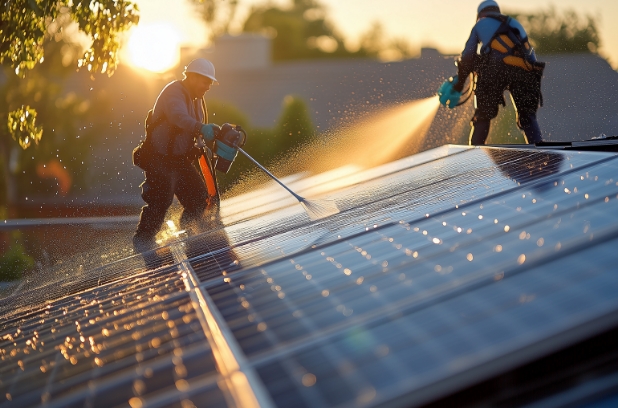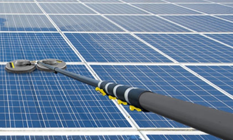 ソーラーパネル専用に設計された自走式洗浄ブラシは、高圧洗浄機と連結して洗浄が可能です。柔らかい回転式ブラシ採用で、パネル表面を傷つけることなく、ムラのない均一な洗浄が実現できます。また、延長ポールを使用することで高所での作業にも対応でき、効率的に広範囲のパネル清掃が行えます。これにより、作業時間の短縮と洗浄品質の安定化を両立し、より安全かつ効果的なメンテナンスを可能にします。